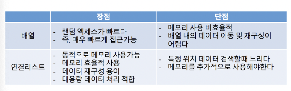 자료구조 중, 선형구조에 해당하는 자료구조이다.