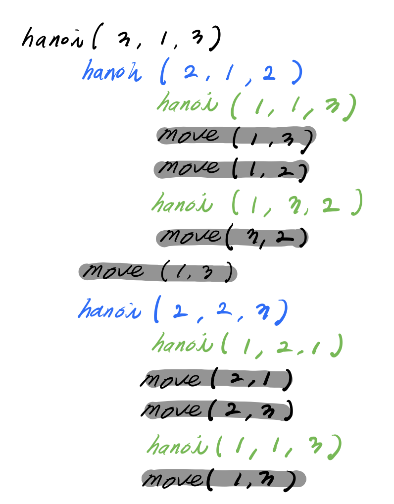 총 discs 를 가지고 재귀를 돌려주는데, 가장 큰 disc에서 작은 disc를 갈 수 있게끔 callstack을 쌓아주고, callback 하는 과정에서 이동 했다고. 이동한 상태 문자열을 만드는 식으로 구현합니다.