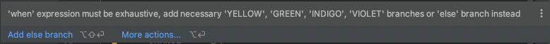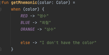 else -> throw Exception("Dirty color") // 매치되는 분기 조건이 없을 시, 익셉션 에러