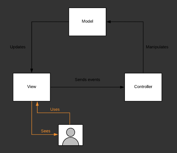 - Controller 는 View 를 선택할 뿐 직접 업데이트 하지 않는다. (즉, View 는 Controller 를 모른다.)