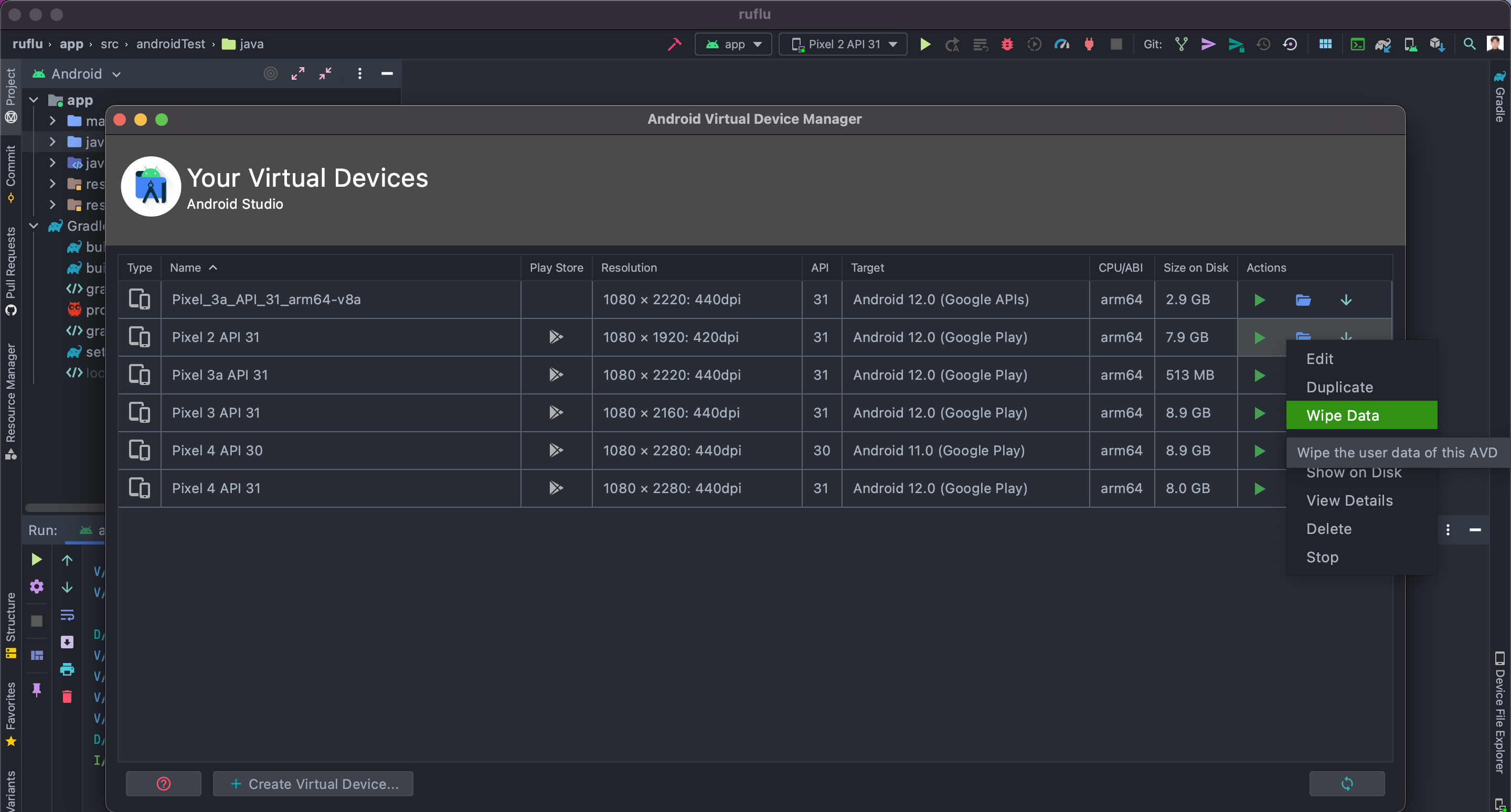 2. 사용하는 에뮬레이터 타입에 맞춰 Wipe Data 를 진행