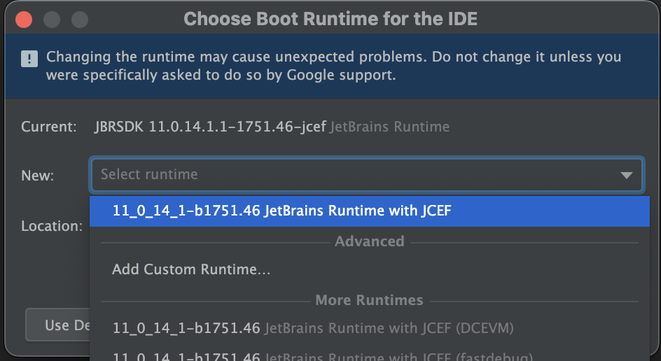 3. Choose Boot Java Runtime for the IDE 입력. 복사해서 붙여 넣으세요.