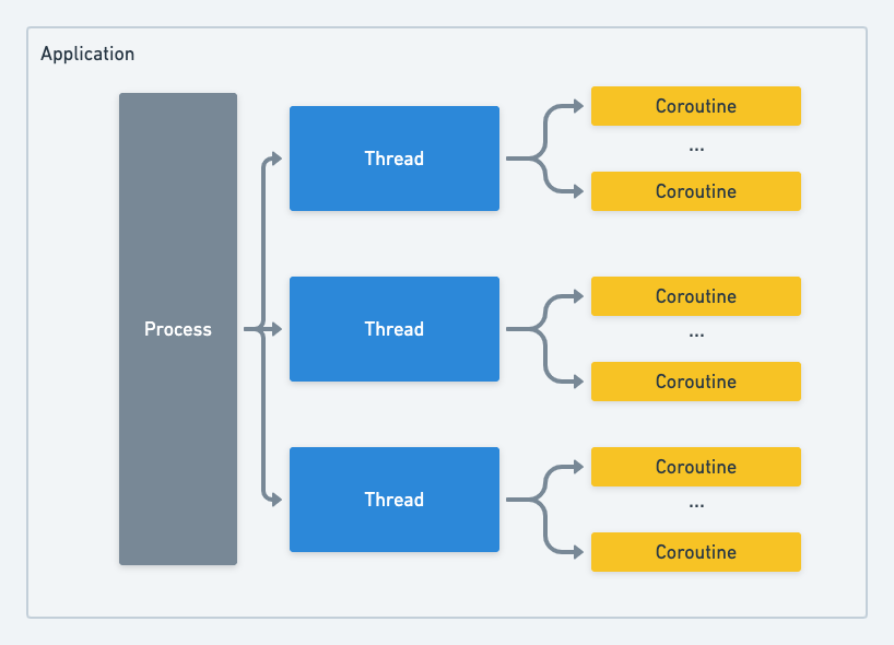 - 여기서 코루틴은 Thread Stack 을 할당을 받지 않고, 프로세스에 할당된 Heap memory 를 공유하여 사용하게 된다.