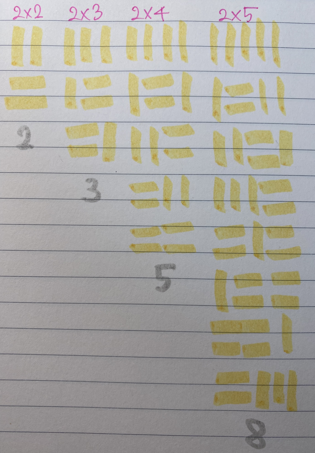 👆 위 그림과 같이 그려보면, 갯수가 피보나치 수열로 증가하는 게 보입니다.