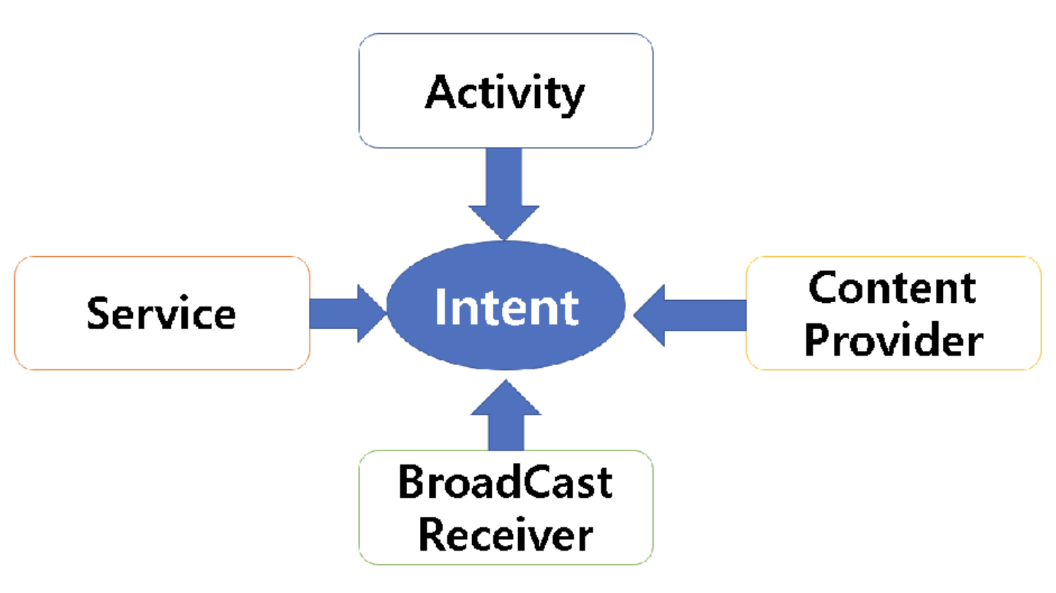 각 컴포넌트는 독립적인 형태로 존재하며, 인텐트(Intent) 를 통해 상호작용한다.