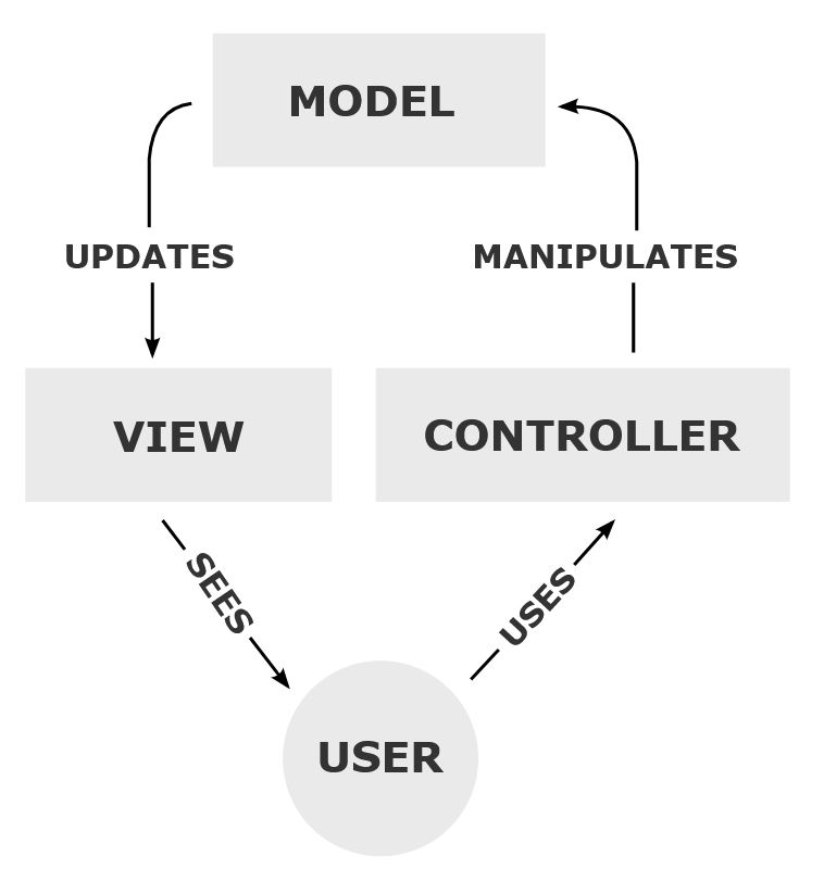 MVC 패턴은 이름에서도 알 수 있듯이 모델(Model), 뷰(View), 컨트롤(Controller) 세 개의 컴포넌트로 이루어져있다. 각 컨포넌트는 고유한 역할을 수행한다.