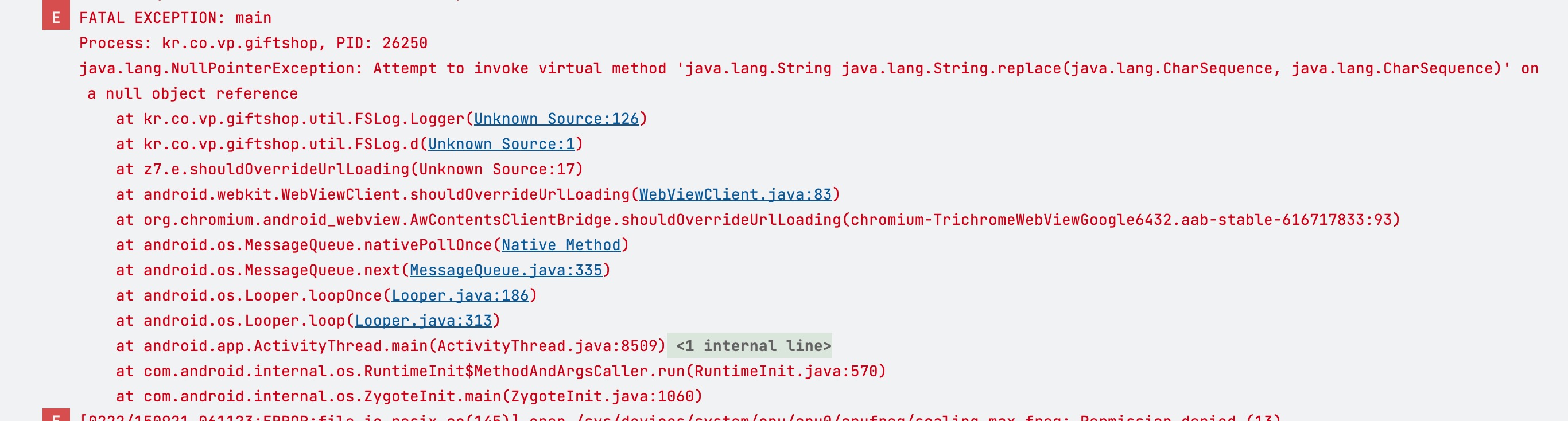 자꾸 WebViewClient 쪽에서 url 이 Null 이 발생하여 NullPointerException 이 발생하는 Error 만 발생했다.