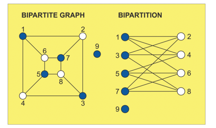 인접한 정점끼리 서로 다른 색으로 칠해서 모든 정점을 두 가지 색으로만 칠할 수 있는 그래프입니다.