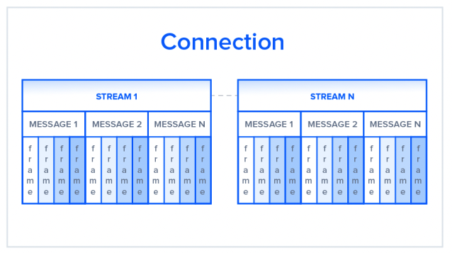 HTTP/2 는 두 컴퓨터 사이에 단일 연결 개체를 설정합니다. 이 연결에는 여러 데이터 스트림이 있습니다.