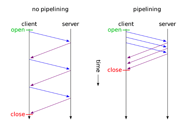 - 영구적인 연결을 사용하면 TCP 연결을 닫으라고 직접 요청하지 않는 이상 계속 연결을 열어둡니다. 이를 통해 클라이언트는 동일한 연결을 통해 여러 요청의 각각의 응답을 기다리지 않고, 전송할 수 있습니다.