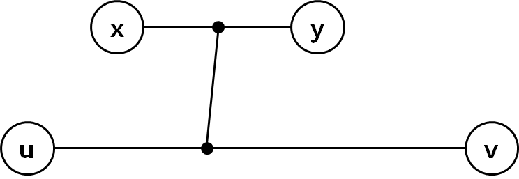 1. 정점 x와 정점 y를 연결하는 경로가 정점 u와 정점 v를 연결하는 경로와 한 점 이상 공유하는 경우