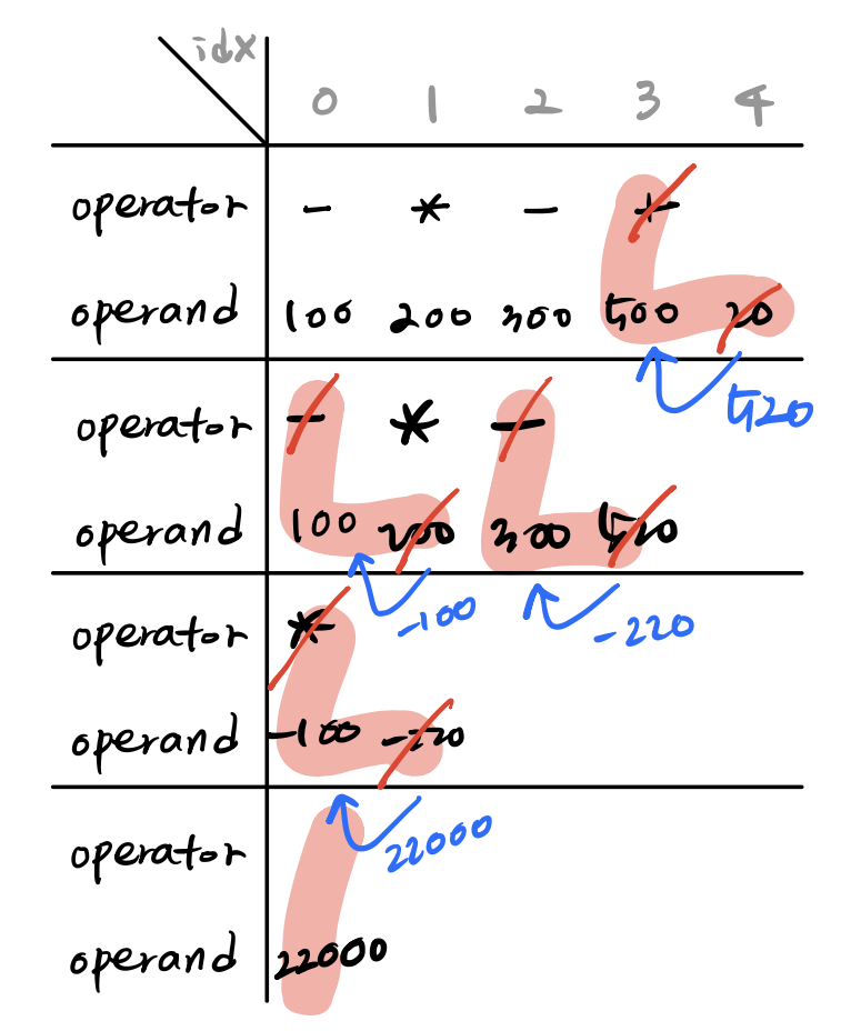그 상황에서 *, - , + 라는 세 연산자가 우선순위를 갖어 문제를 구현하는 방식입니다.